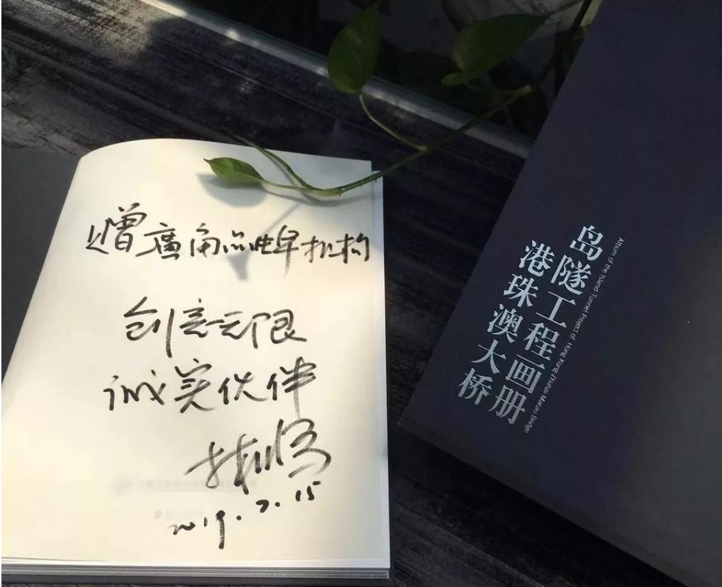 2019年7月15日,港珠澳大橋島隧項目部總工程師林鳴曾為廣角品牌機構題字:創意無限,誠實伙伴!